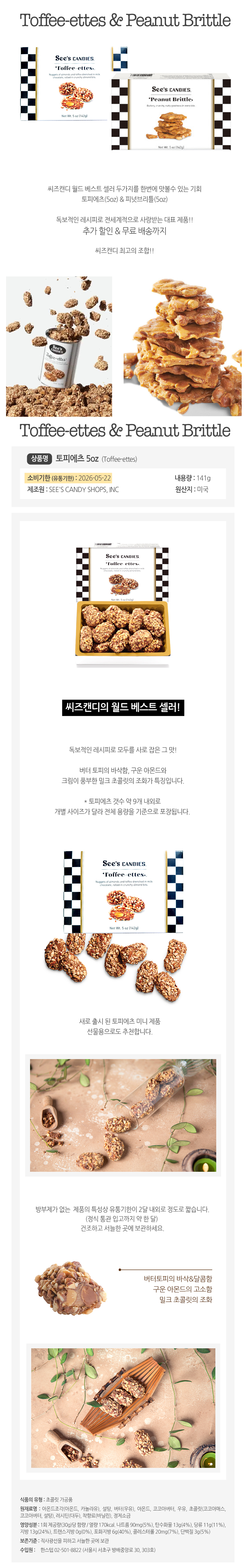 씨즈캔디 월드 베스트셀러 토피에츠 & 피넛브리틀을 한번에 맛볼수 있는 혜택